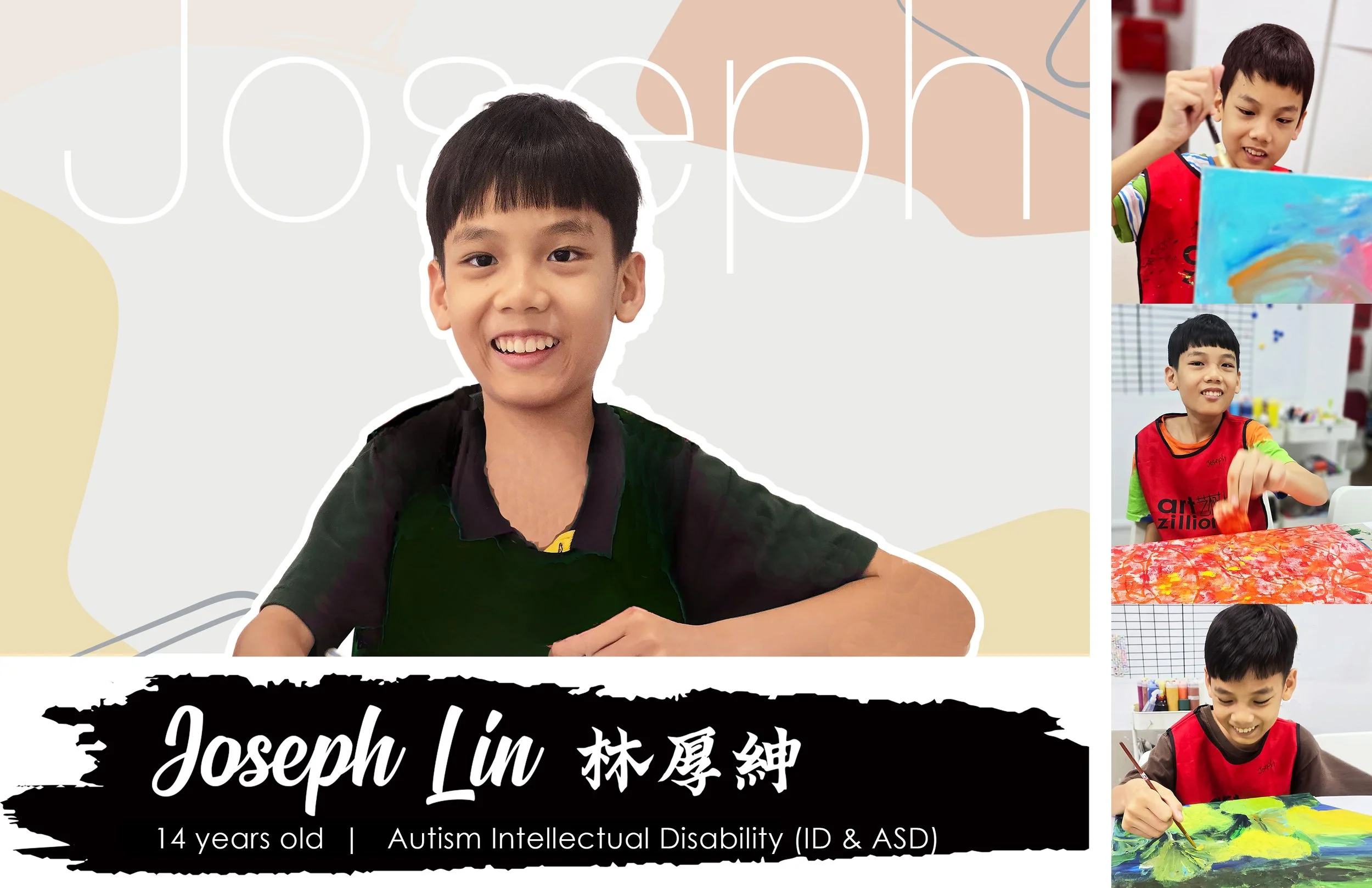 Joseph is a young artist with a unique perspective, channeling his creativity into vibrant and expressive artworks. Diagnosed with ASD, ADHD, Tourette Syndrome, and Moderate Intellectual Disability, he has found art to be a powerful means of self-expression. His works often reflect his personal interests, including Singapore's architecture, iconic landmarks, and his deep fascination with hotels ranging from three-star to five-star establishments. Greatly inspired by Vincent van Gogh, Joseph enjoys incorporating bold colors and expressive strokes into his paintings, bringing movement and energy to his work.