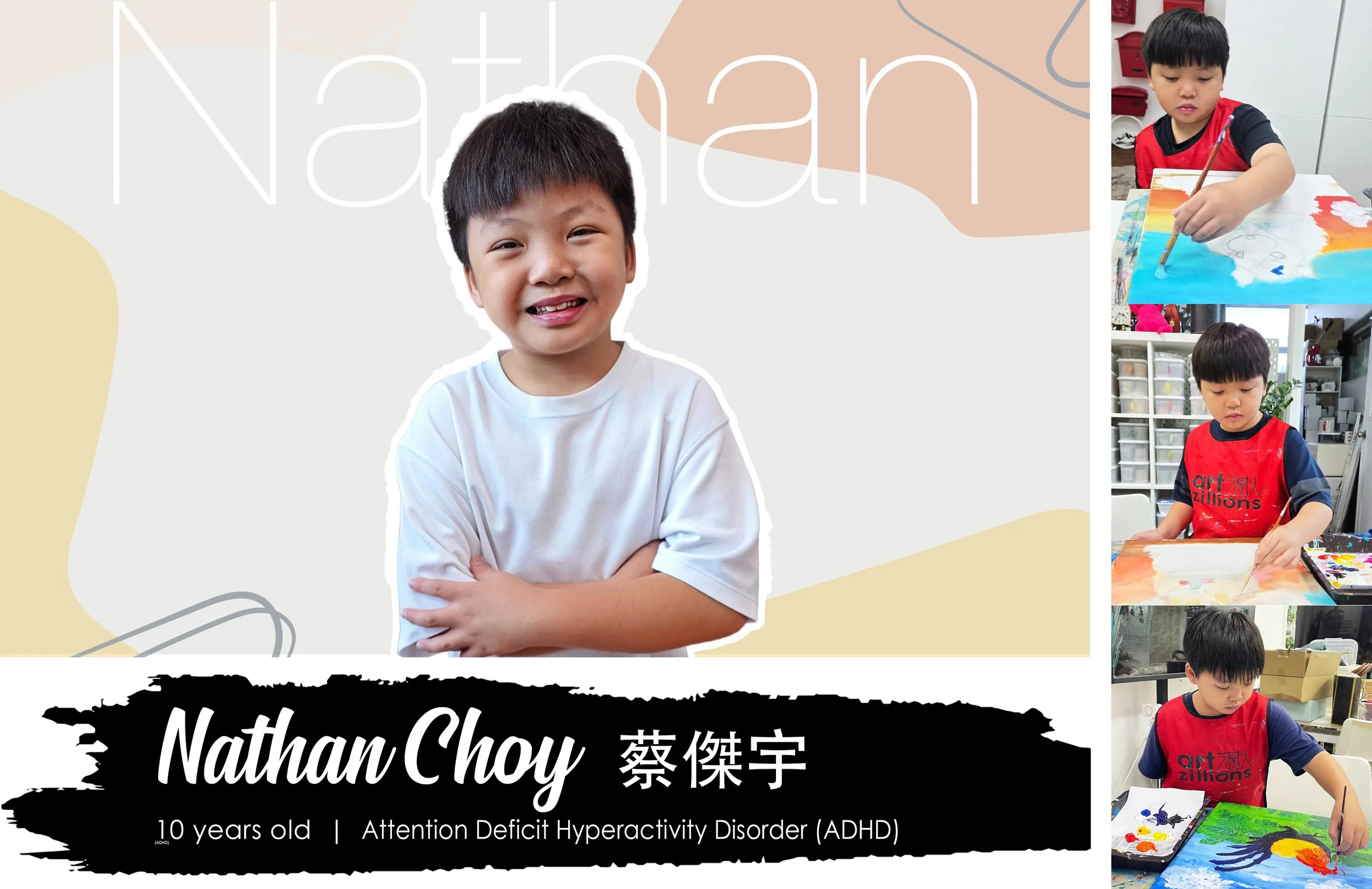 Nathan sometimes struggles with focus, but art has become his way of centering himself. It allows him to express ideas that words can’t always capture, giving him both a creative outlet and a sense of calm.